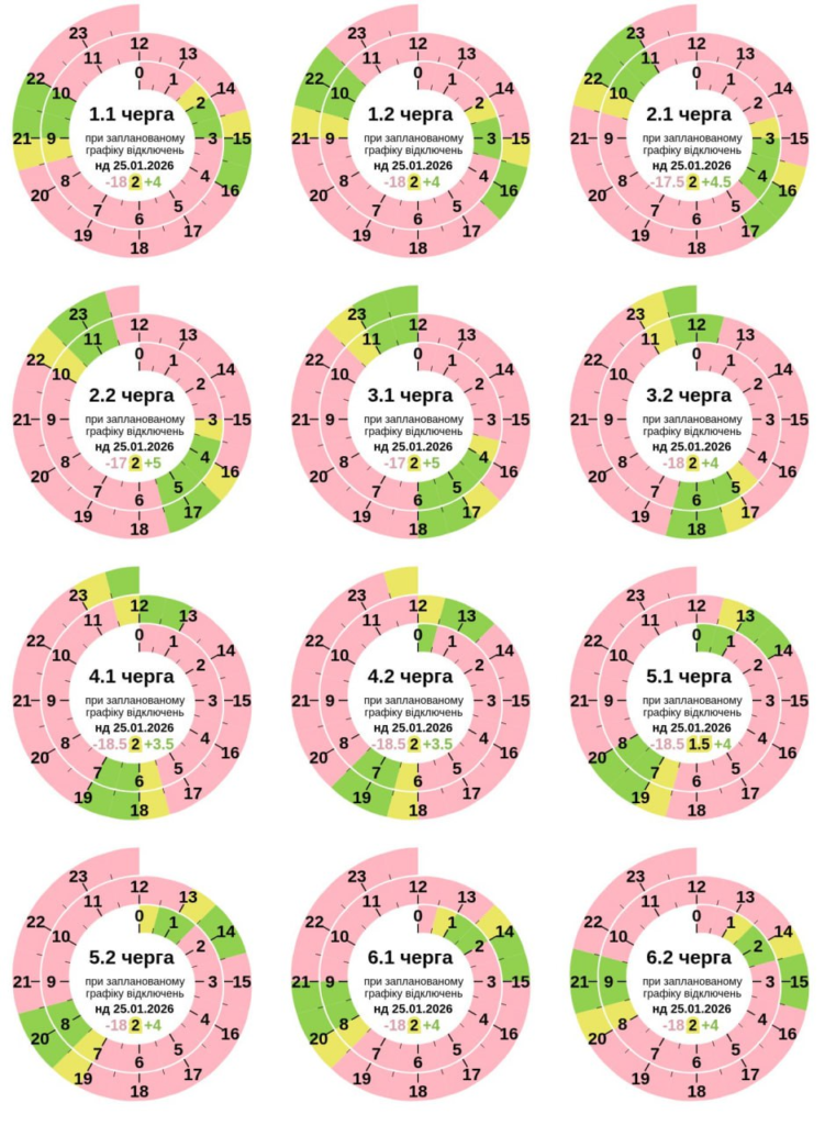 Графік погодинних відключень світла на 25 січня: