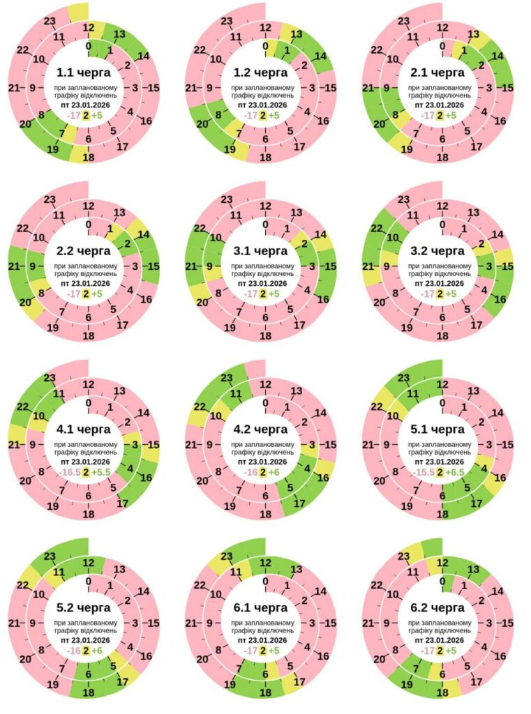 Паралельно з 0:00 до 23:59 23 січня діятимуть графіки обмеження споживання електричної потужності для бізнесу в обсязі пʼяти черг.