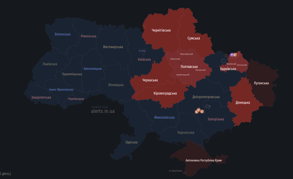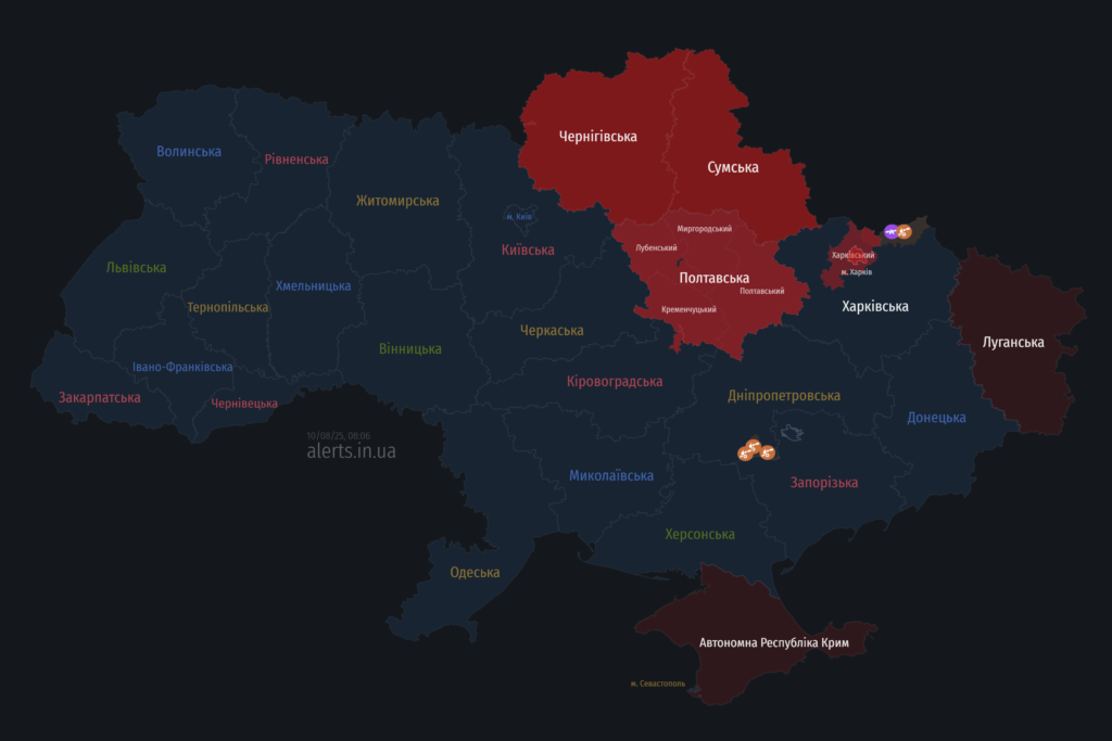 Мапа тривог 10 серпня: