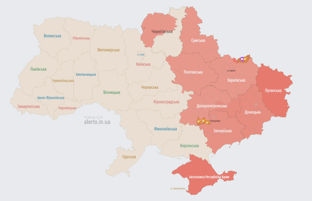 У ніч на 17 березня противник атакував 178 ударними БпЛА типу «Шахед», «Гербера», «Італмас» та безпілотниками інших типів.