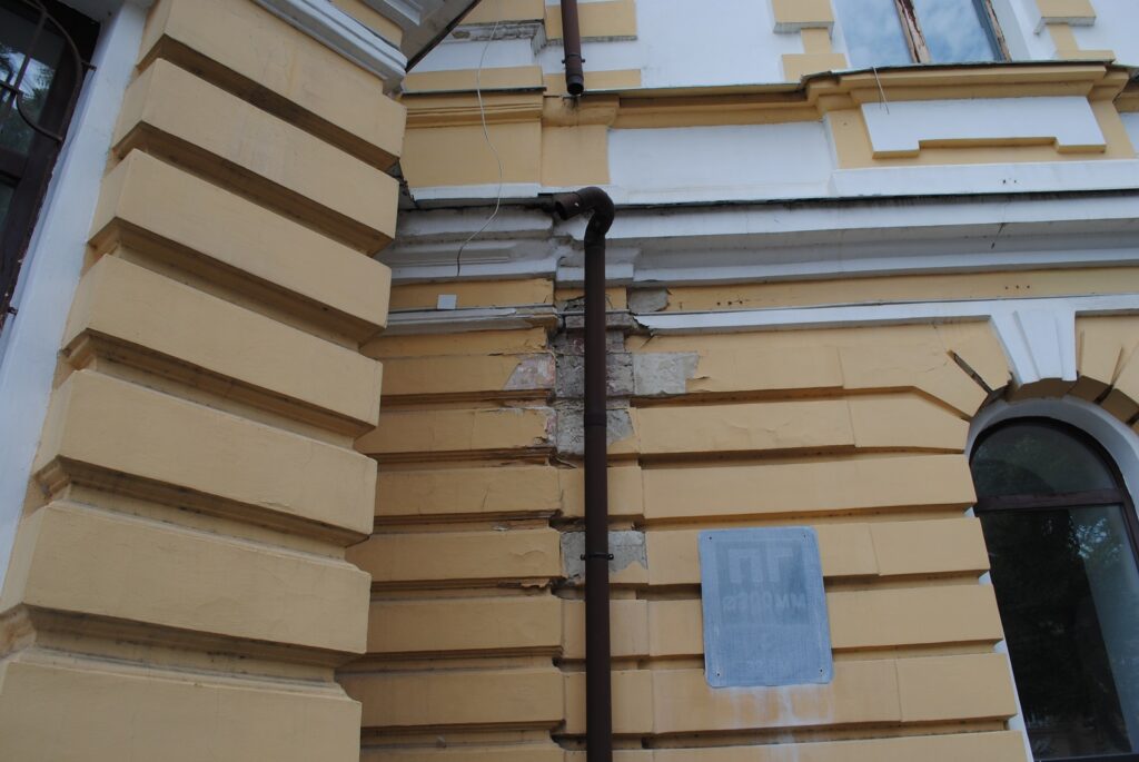 - під час обстеження будівлі 28 вересня 2022 року, виявили перепланування поверхів; значні ділянки з втратою шарів опорядження стелі та стін у підвальній частині будівлі. Ззовні стіни й фасади потиньковані та пофарбовані у жовтий колір, окремі елементи водопровідних труб південного кутого бічного фасаду втрачено тощо;