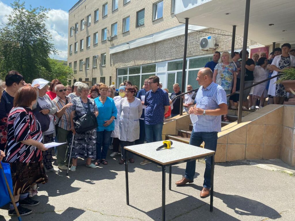 30 червня пацієнти та медики зібралися на протест під стінами поліклініки, хоча це забороняє воєнний стан. Про це повідомляє кореспондентка ЗМІСТу з місця подій.