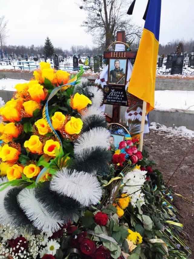 Жовто-блакитний стяг, який огортав домовину полеглого, військові вручили батькам героя на вічну пам’ять про подвиг сина. Євгенія Кулика поховали з військовими почестями на центральному кладовищі Зінькова.