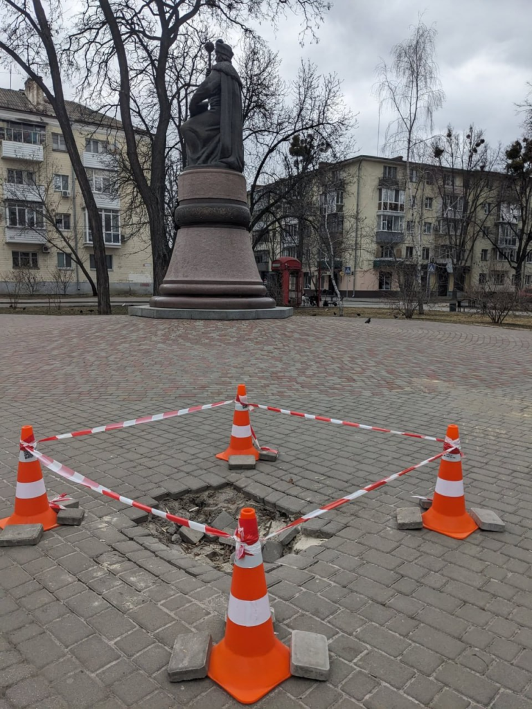 У сквері на Соборному майдані в Полтаві виявили просідання ґрунту. Невелике провалля вже огородили, а ремонтні роботи розпочнуть 18 березня.