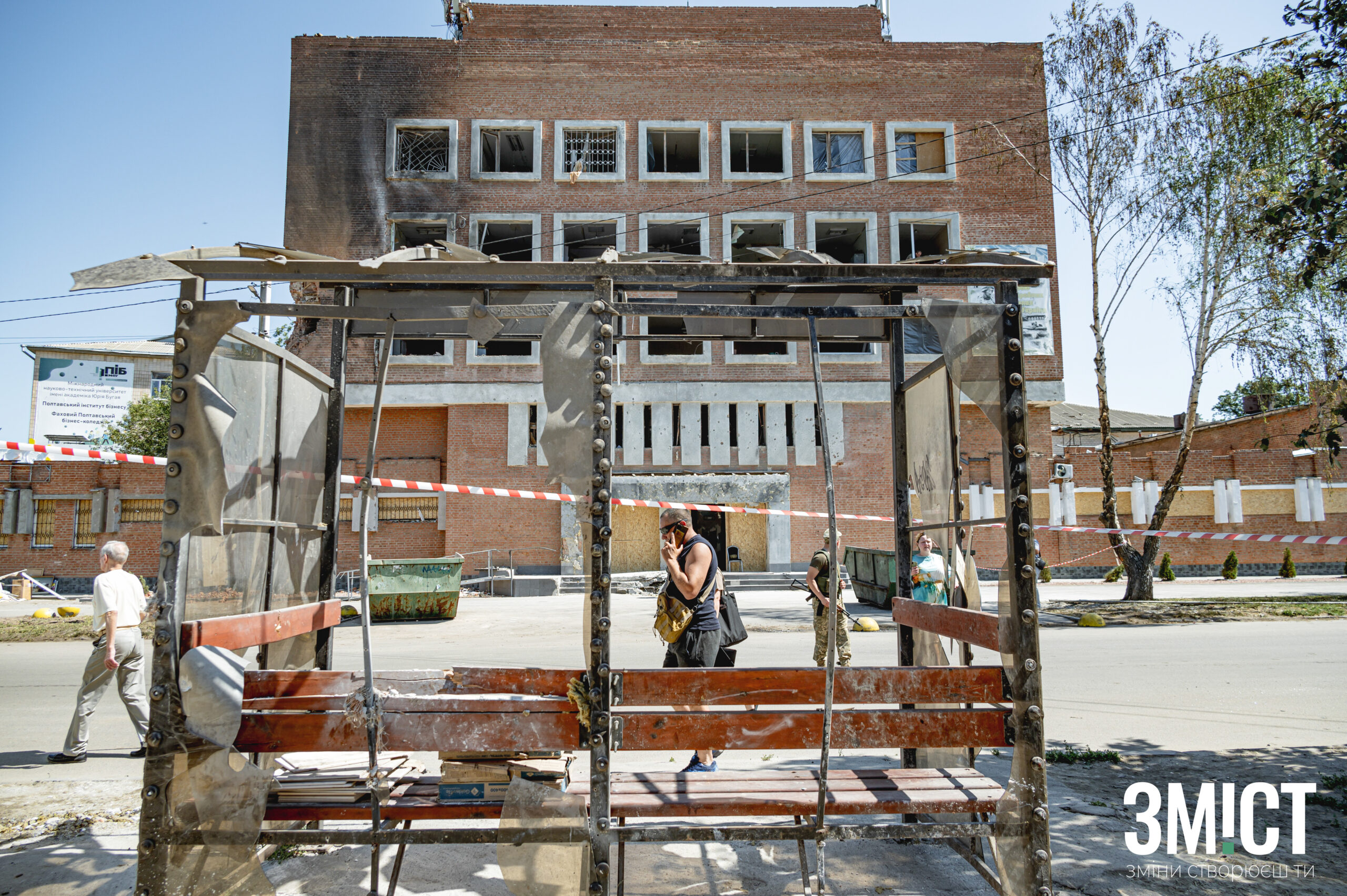 ЗМІСТ публікує фоторепортаж про наслідки російського удару по Полтаві на наступну добу після обстрілу.