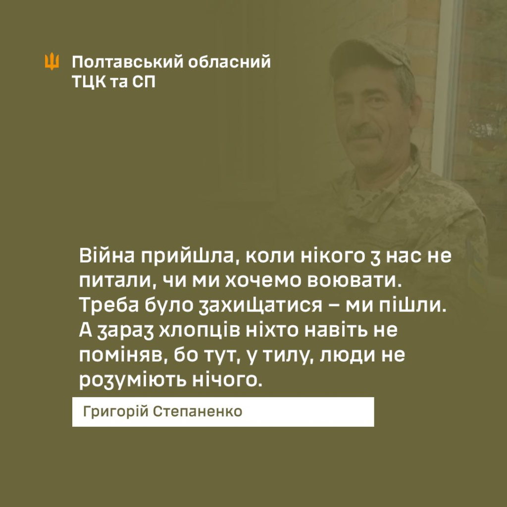 56-річний старший сержант Григорій Степаненко пройшов службу у двох бригадах, пережив обстріли під Авдіївкою та важку зиму на позиціях. Після виявлення невиліковної хвороби він продовжив службу в тилу й нині командує взводом охорони у Лохвиці.