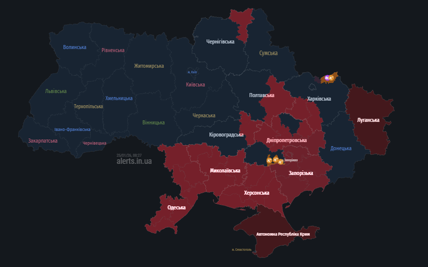 Рекетні та дронові загрози для Полтавського району: чому лунає сирена 25 січня