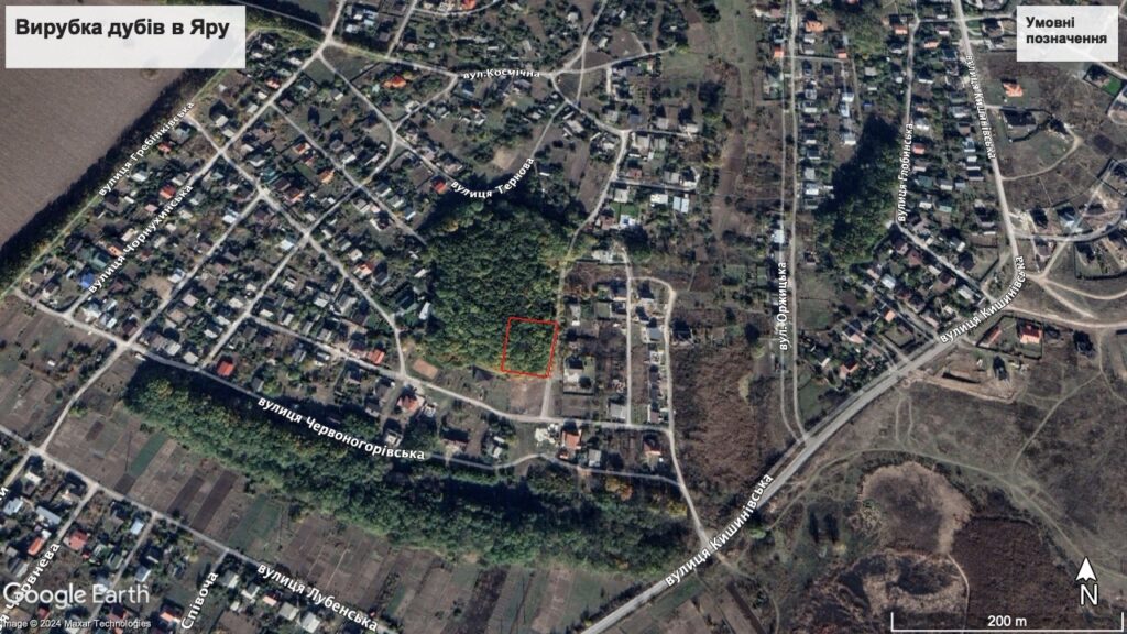 Ділянка, що належить Артемову і на якій сталася вирубка дубів