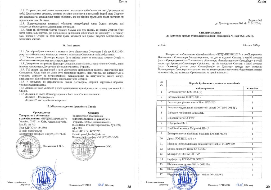 Частину техніки Олександр Артемов орендує у ТОВ «Будімперія 2017». Якою до грудня 2023 року володів Олексій Лисенко. З 2017 року на рахунку компанії 97 переможних державних лотів від Полтавщини на суму 375 мільйонів гривень. А у квітні 2024 року Лисенко зареєстрував нову – ТОВ «Грандтранс+» за тією ж адресою, що і ТОВ «Грандбуд+»: Полтава, вул.Котляревського, 22Б (оригінальністю у назві не відзначилися).