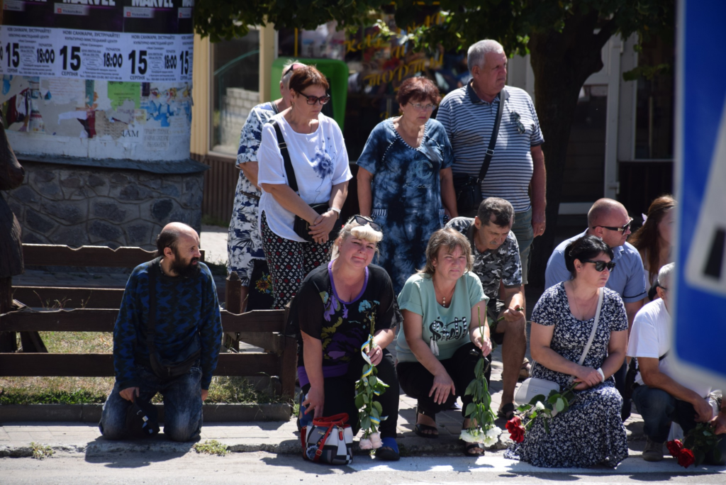 Жителі громади зустрічали полеглого воїна на колінах зі сльозами, квітами й прапорами, віддаючи захисникові останню шану.