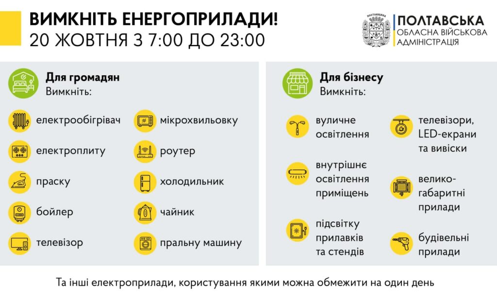 Жителів Полтавщини також просять ощадливо ставитися до електроенергії: