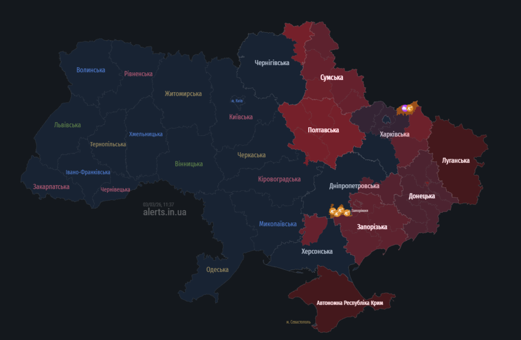 Нагадаємо, що на ранок 3 березня російські дрони атакують Полтаву. Безпілотники фіксують над Подільським районом міста, а нові дрони заходять на удар.