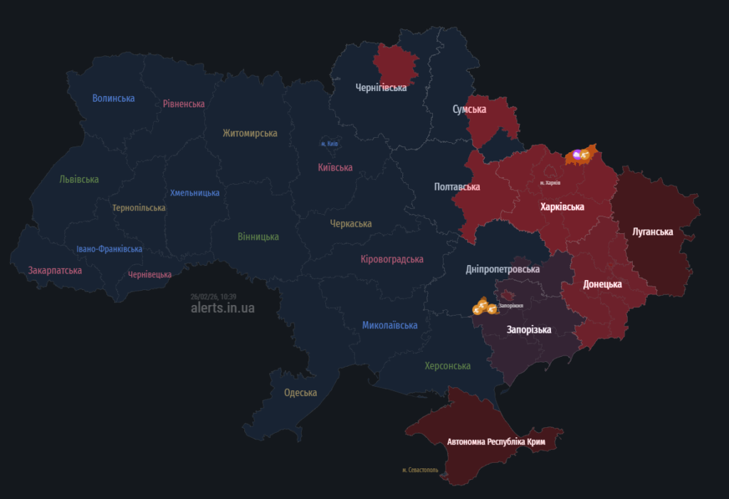 OSINTери підрахували, що у ніч на 26 лютого росіяни задіяли орієнтовно 300-350 «Шахедів», 13 крилатих ракет Х-101, 12 балістичних ракет «Іскандер-М», 2 гіперзвукові «Циркони» та одну ракету Х-22, яка не долетіла до території України.