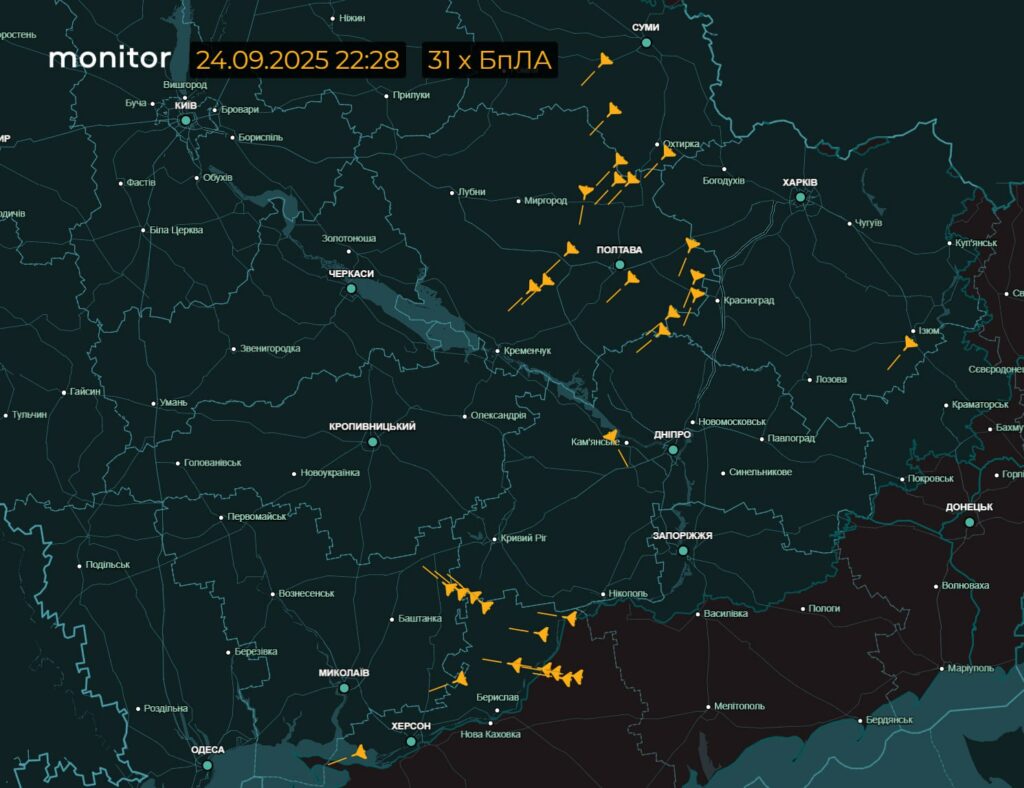 ЗМІСТ зібрав дані про небезпеки для Полтавщини за повідомленнями Повітряних Сил та OSINT-ресурсу «Розвідка України» 24-25 вересня.