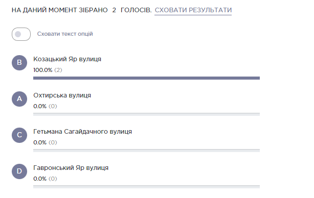 Побачити проміжні результати голосування за назви вулиць можна нижче: