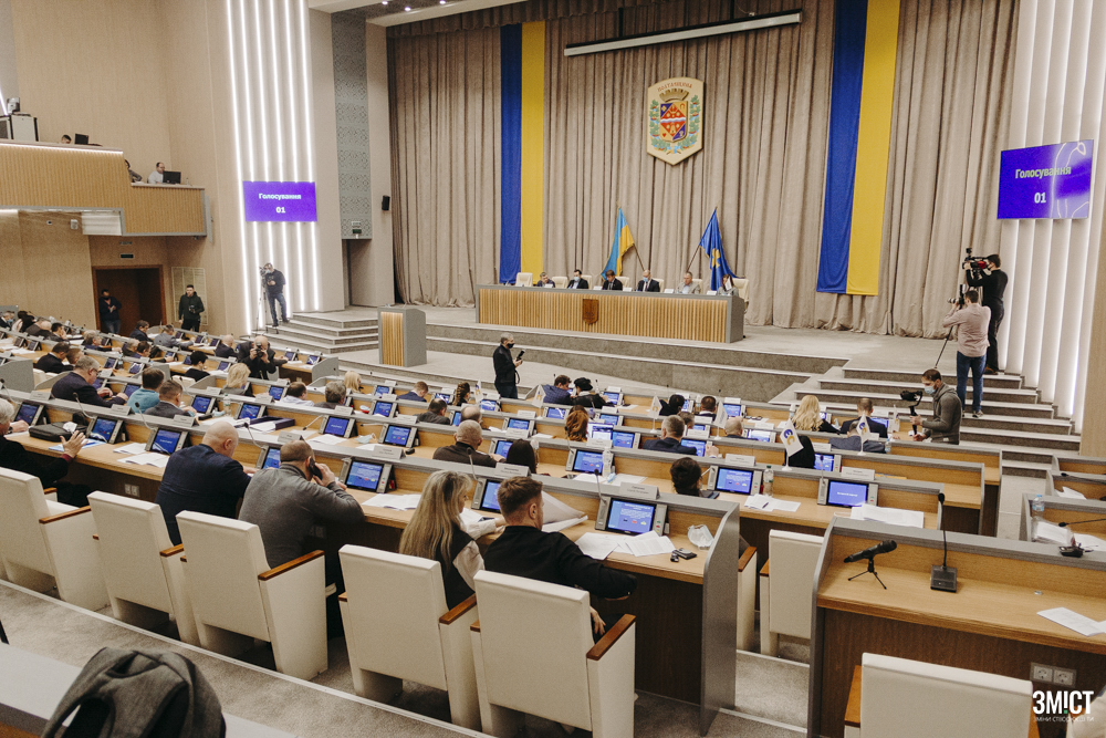 Депутати Полтавської обласної ради у сесійній залі, 23 лютого 2021 року