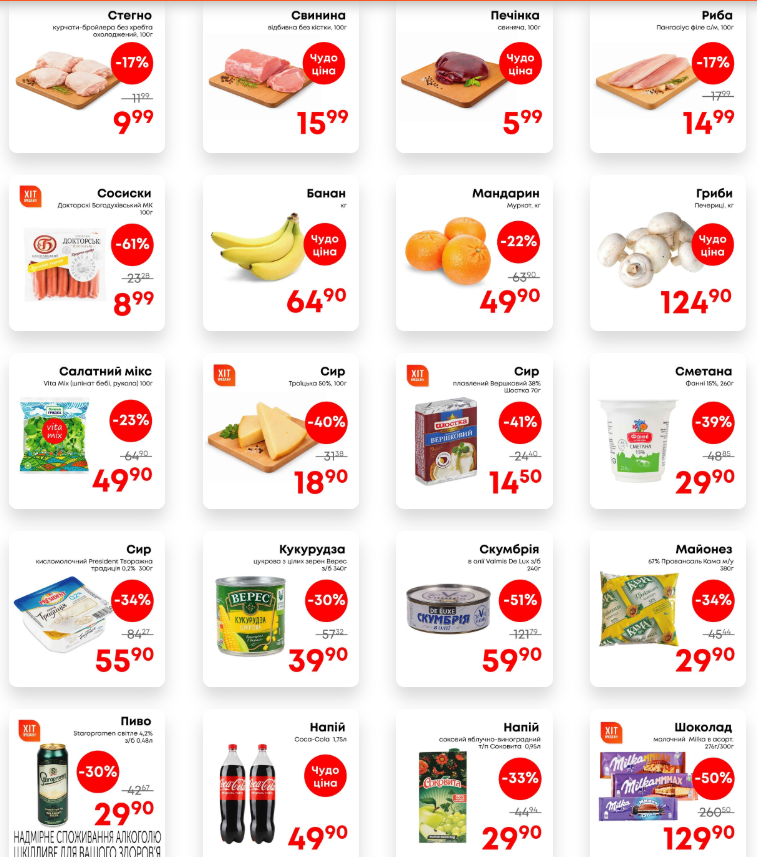 Щотижневі знижки у полтавському супермаркеті «Чудо Маркет»: огляд товарів