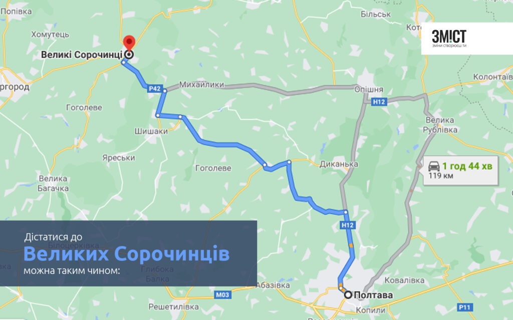 Дістатися Великих Сорочинців можна таким чином: