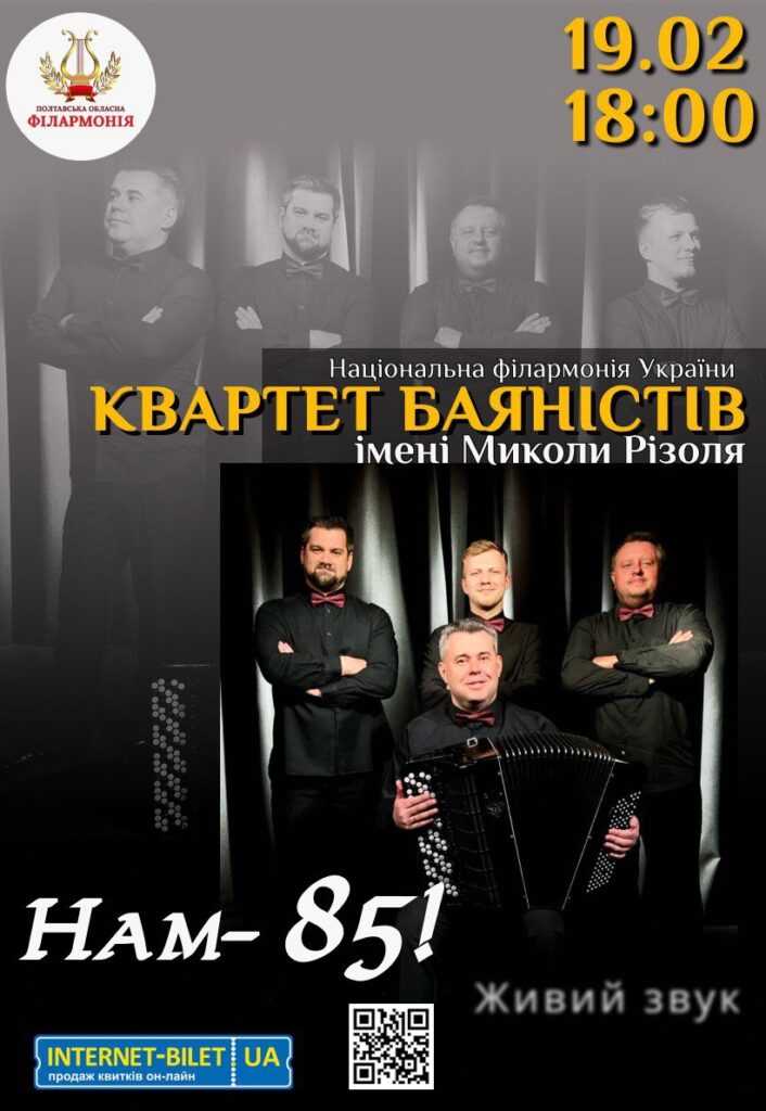 З новою програмою «Нам 85» виступить квартет баяністів імені Миколи Різоля у складі: