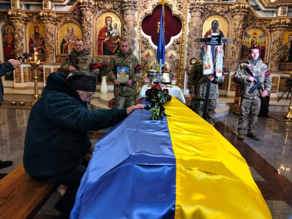 На щиті до Полтавської громади повернувся Юрій Дудник. Рідні, близькі та знайомі провели воїна в останню путь.