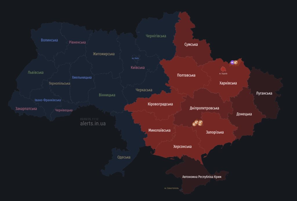 11:12. Повітряна тривога на Полтавщині. Зафіксовані пуски керованих авіаційних бомб тактичною авіацією на Донеччині. За даними Повітряних Сил ЗСУ, швидкісна ціль зафіксована на Миколаївщині.