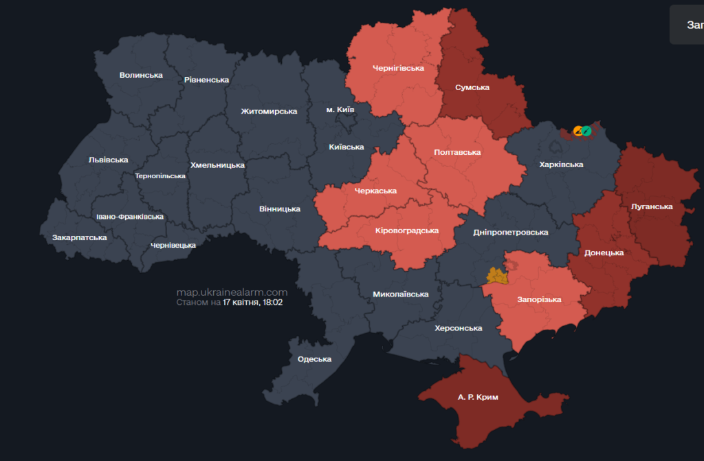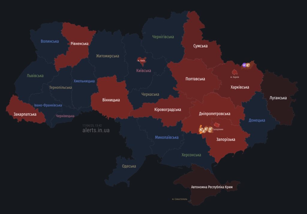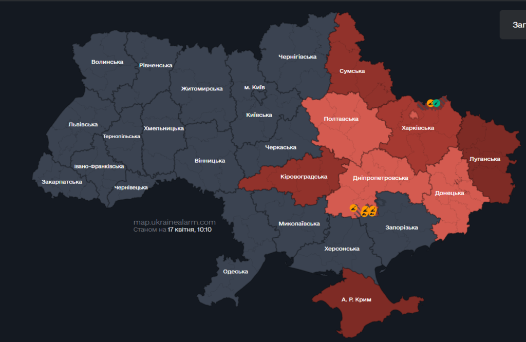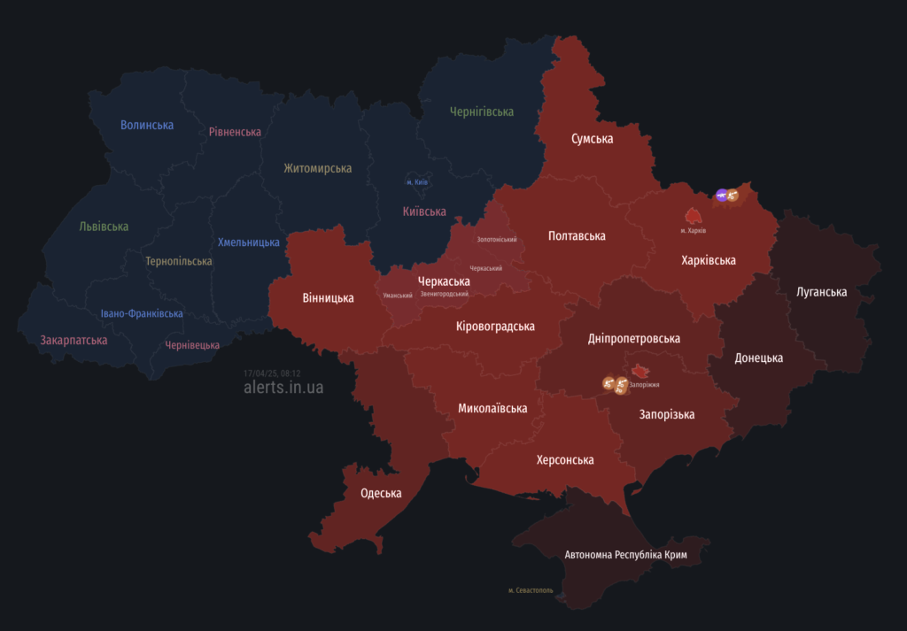 08:10 – повітряна тривога на Полтавщині. Ракетна небезпека в областях де оголошена повітряна тривога. Існує загроза балістики, повідомили Повітряні Сили ЗСУ.