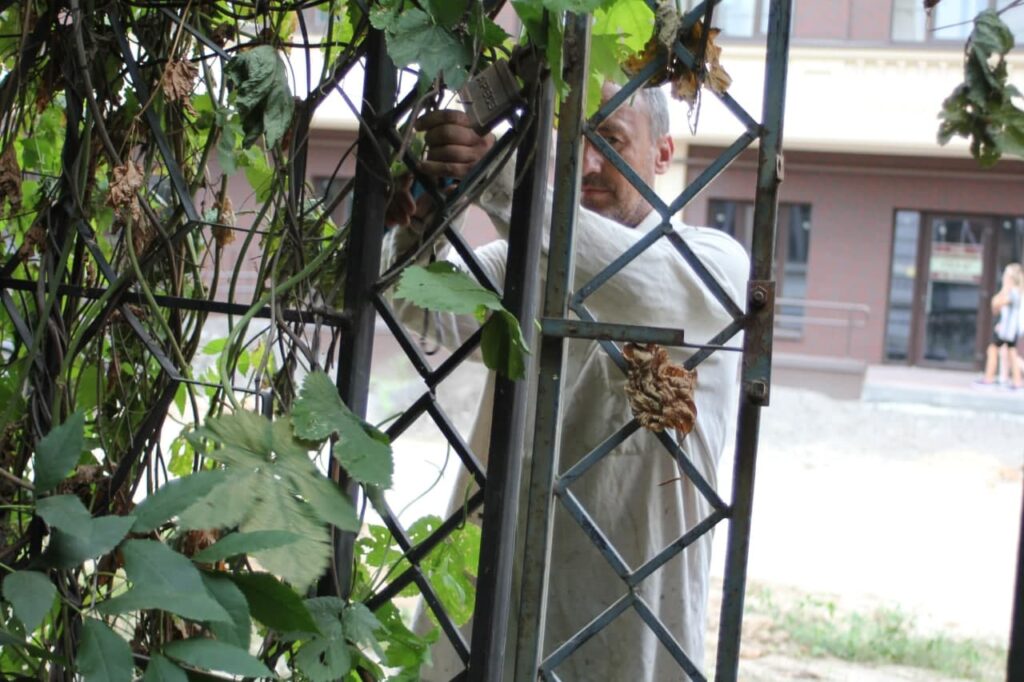 Наразі від дерев, бур’яну та сміття розчищають подвір’я у якому розташований будинок Наума Бахмутського.