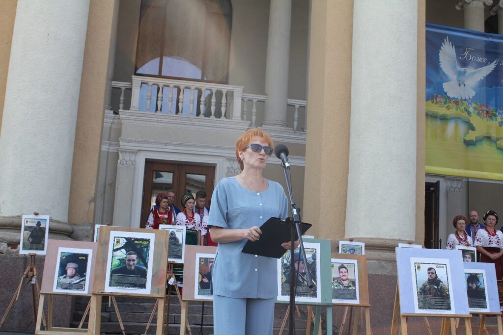 На Театральній площі пролунала молитва. Капелан Сергій Сущенко молився за полеглих захисників та захисниць України. Він каже, що ми не маємо права програти цю війну. Тому потрібно згуртуватися й допомагати фронту й тоді вистоїмо.