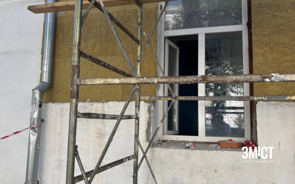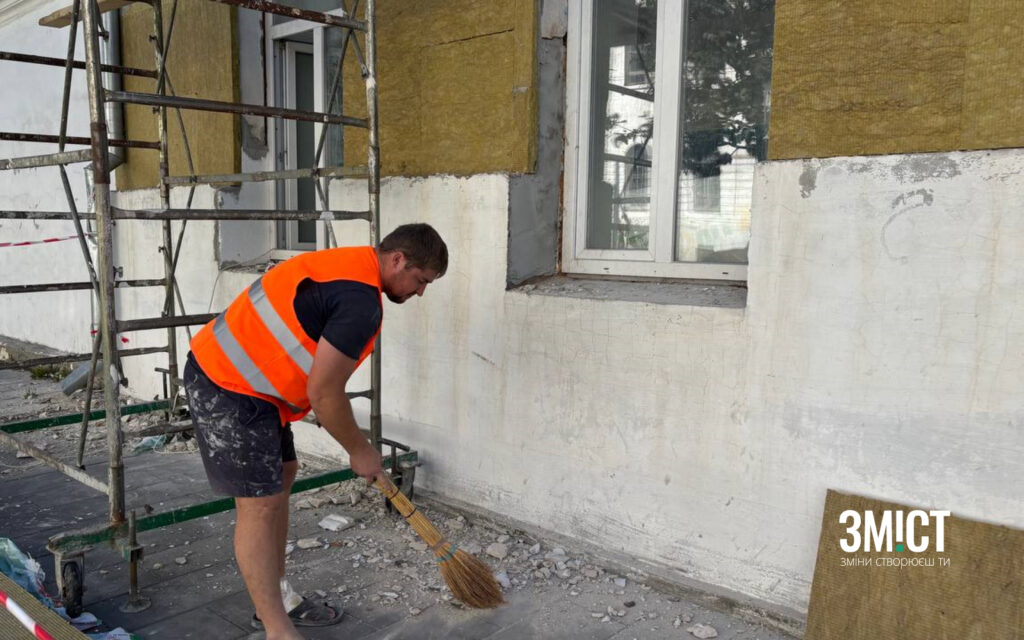 У спортивній школі імені Бутовського на вул. Соборності, 37 відновили ремонтні роботи. Триває оновлення фасаду будівлі.