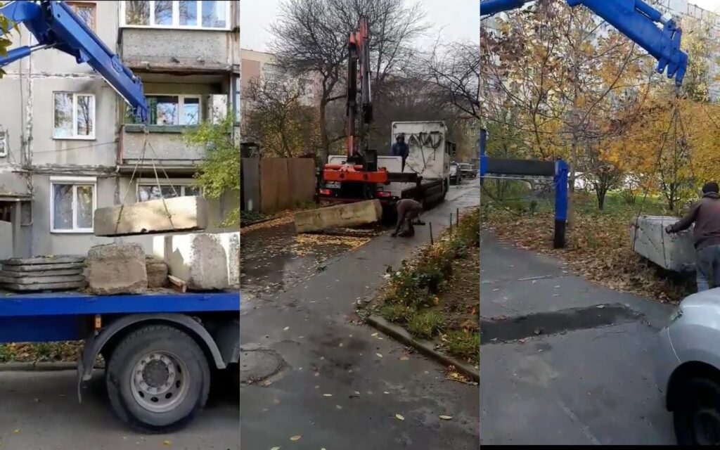 У дворах Полтави прибирають самовільно встановлені шини та бетонні блоки для обмеження руху