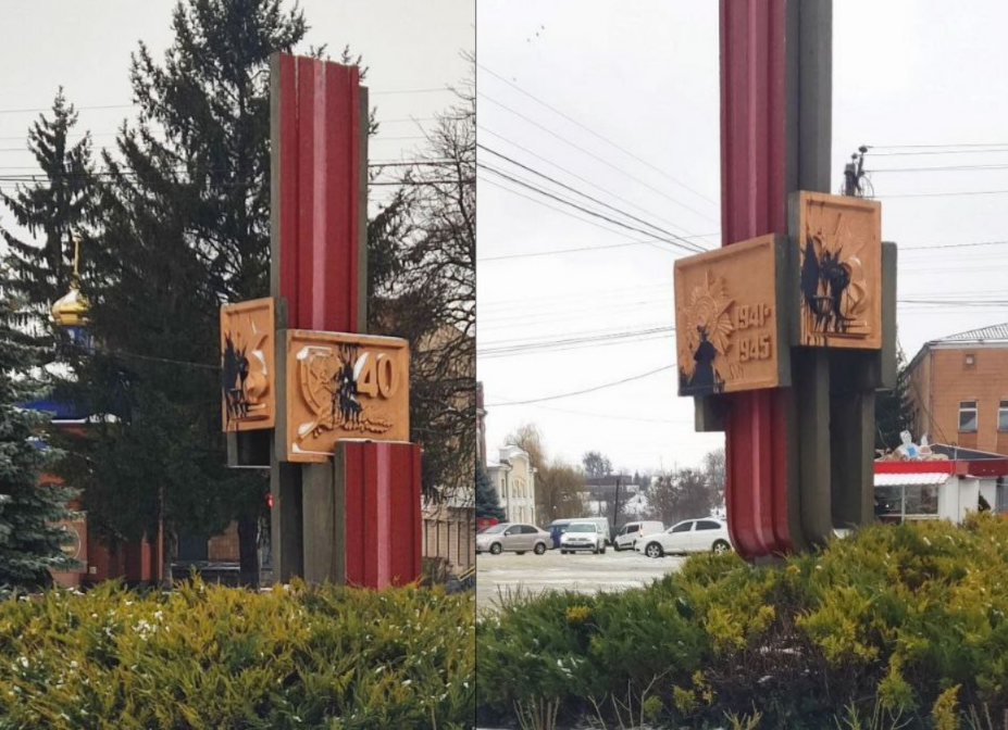 Фахівці комунального підприємства «СпецЕко» демонтували синьо-жовті літери, з яких складалася назва «Комсомольськ». Це була стела на в'їзді до міста з боку Дмитрівки.