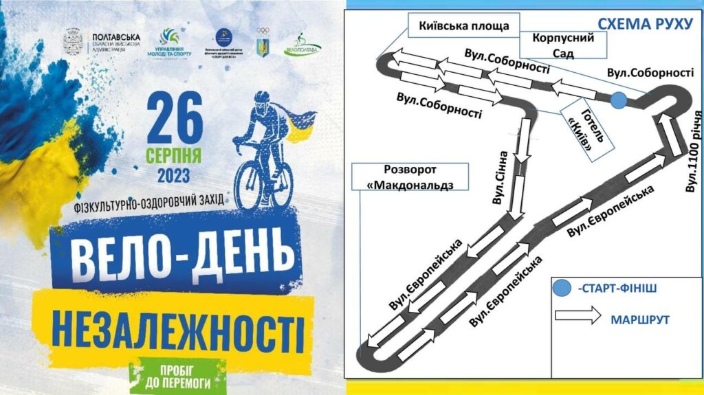 26 серпня 2023 року в місті Полтава відбудеться фізкультурно-оздоровчий «Вело-День Незалежності» – пробіг до перемоги.