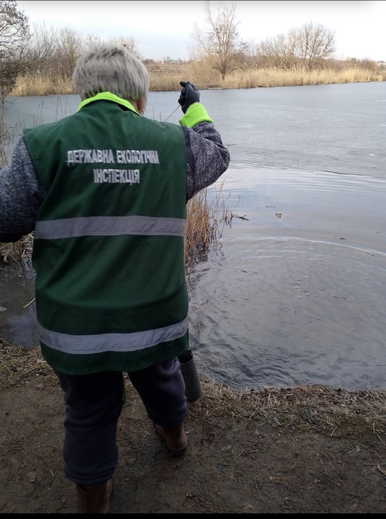 Під час огляду водойми виявили земельну ділянку з візуальними ознаками забруднення з подальшим потраплянням невідомої речовини до ставка. Фахівці відібрали проби поверхневих вод та ґрунту для проведення досліджень.
