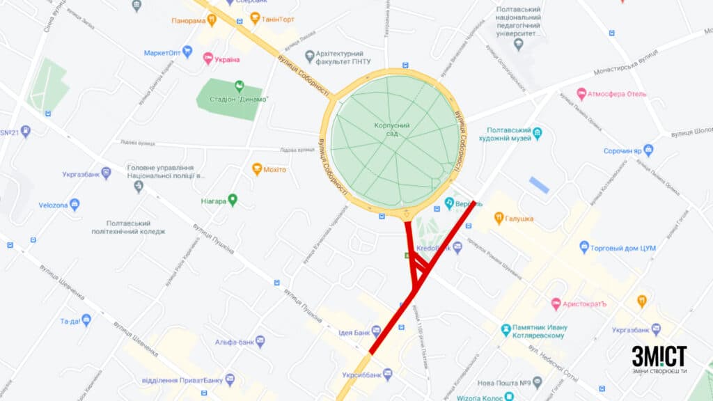 Станом на 9:20 патрульна поліція в Полтавській області перекрила рух транспорту на частині вулиць 1100-річчя Полтави та Небесної Сотні. Про це повідомляє 9 грудня патрульна поліція.