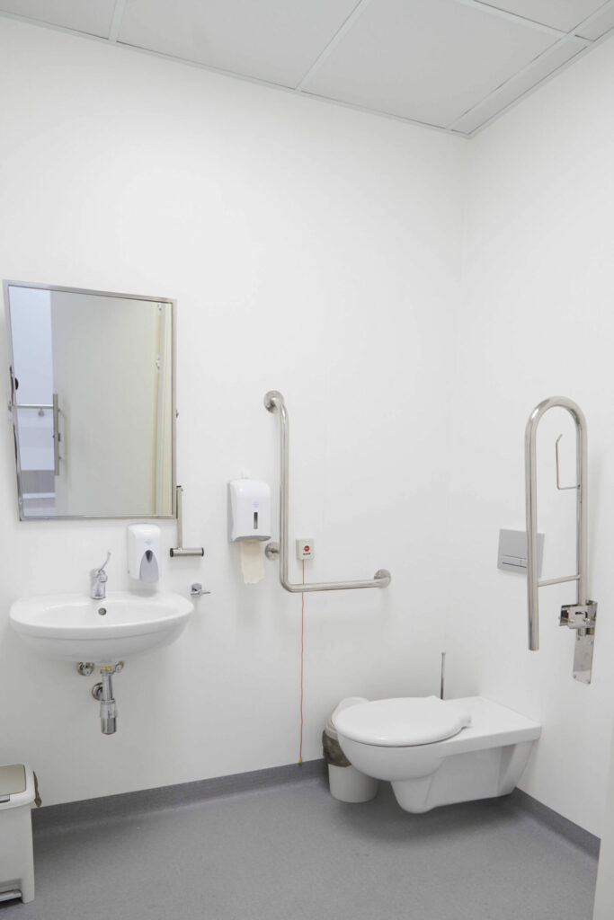 - інклюзивні туалетні кімнати з площею, достатньою для пересування в кріслах колісних.