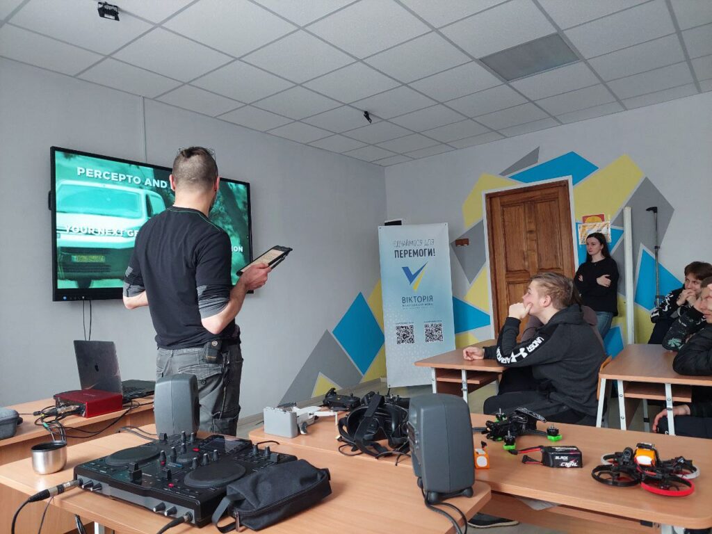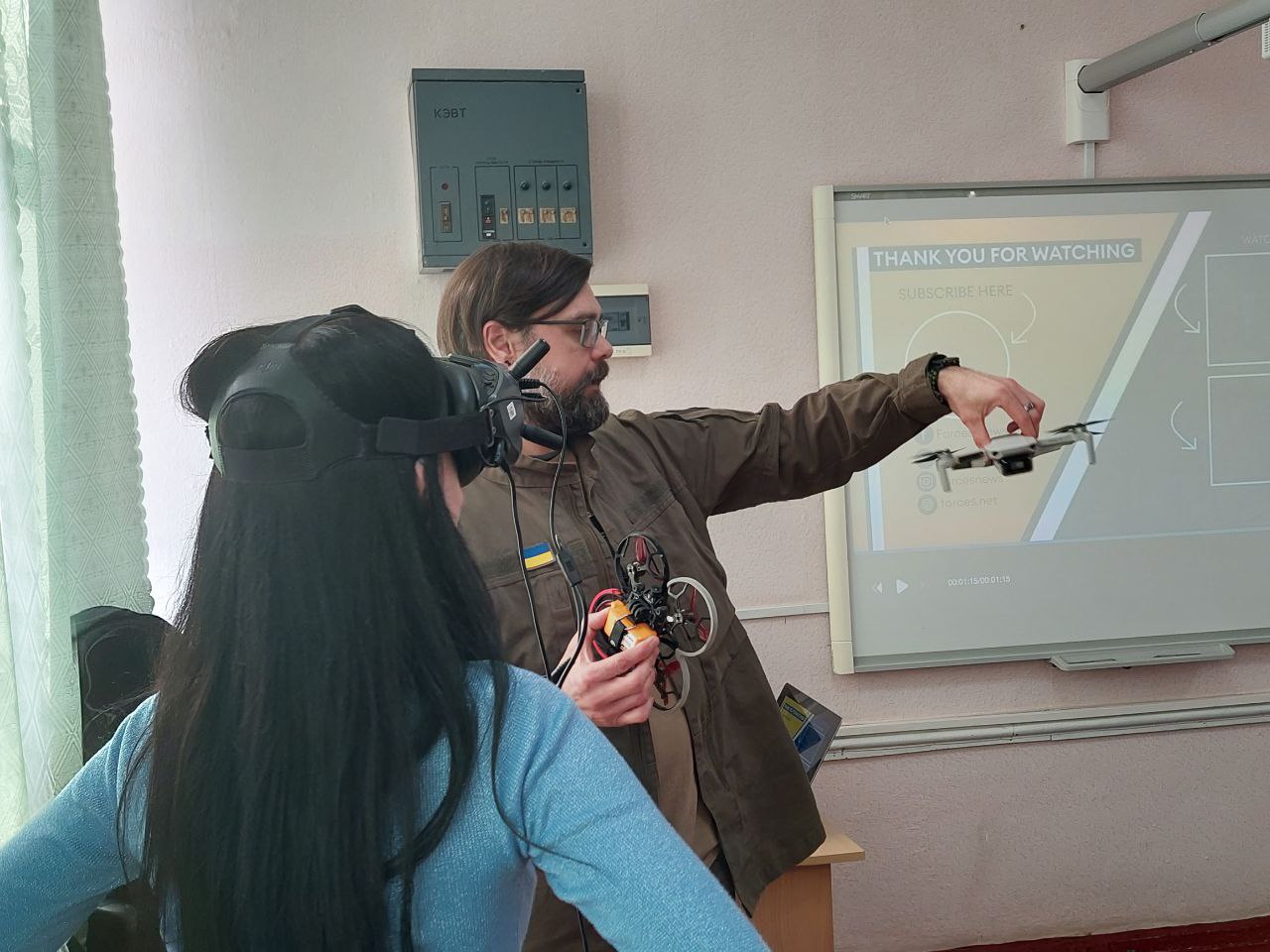 Одне з перших занять відбулося у ліцеї Терешківської громади, наприкінці якого підлітки вже самостійно пробували керувати квадрокоптером. Учасникам тренінгу також розказали та показали можливості професійного гоночного FPV дрона.