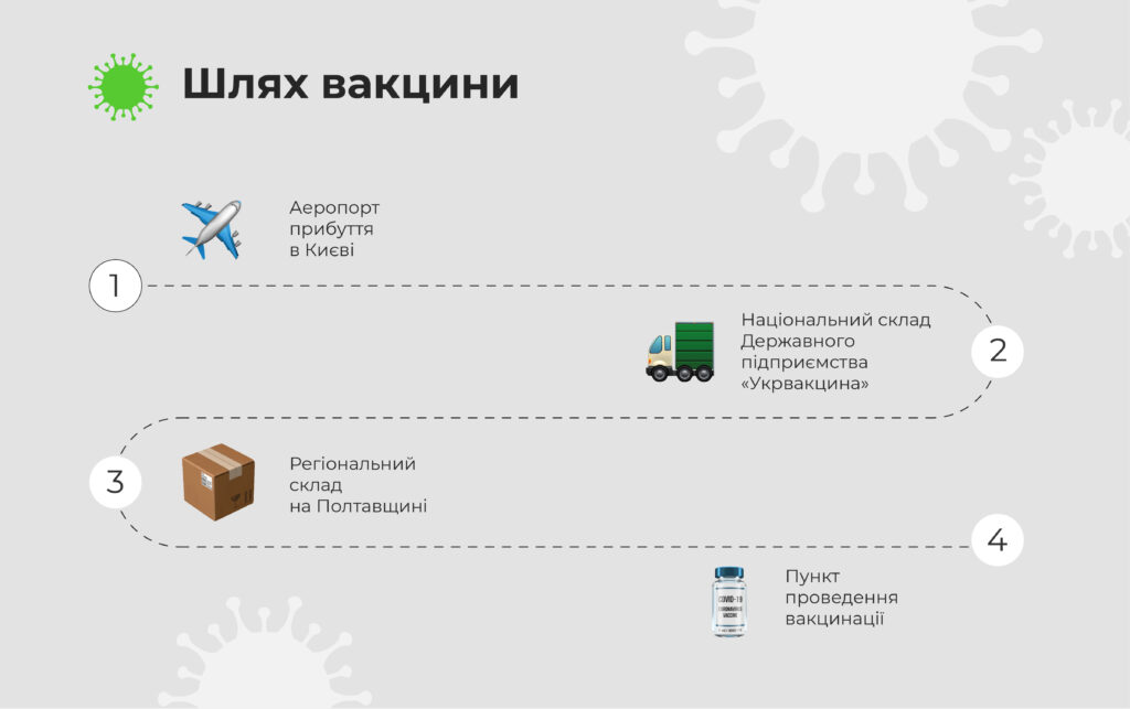 На першому етапі вакцинації в області використовуватимуть РНК-вакцину виробництва Pfizer – BioNTech. За словами Віктора Ляшка, її розподілять для вакцинації працівників лікарень, де надають допомогу пацієнтам з COVID-19.
