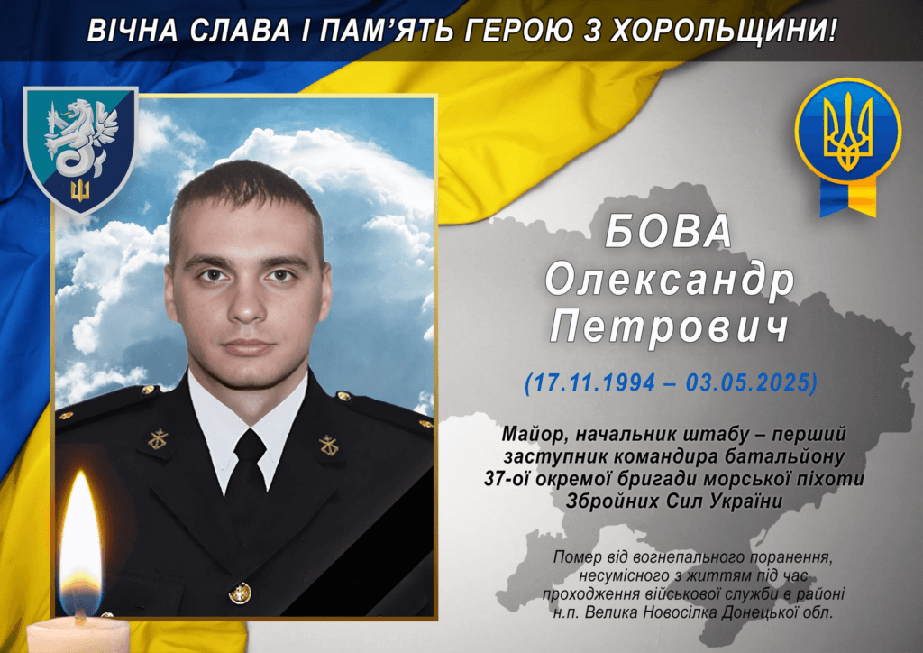 У Хорольській громаді прощатимуться воїном Олександром Бовою, який боронив країну на фронті.