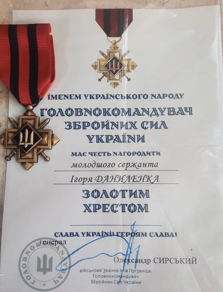 Молодший сержант Ігор Даниленко з Миргородського району отримав почесну нагороду «Золотий Хрест» за успішне виконання бойових завдань.