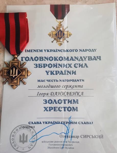 Наказ про нагородження підписав Головнокомандувач ЗСУ Олександр Сирський. «Золотий Хрест» військовий отримав за проявлену мужність і успішне виконання бойових завдань.
