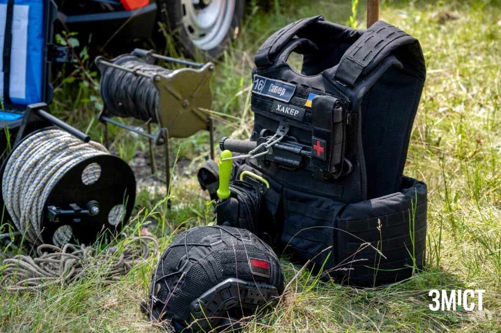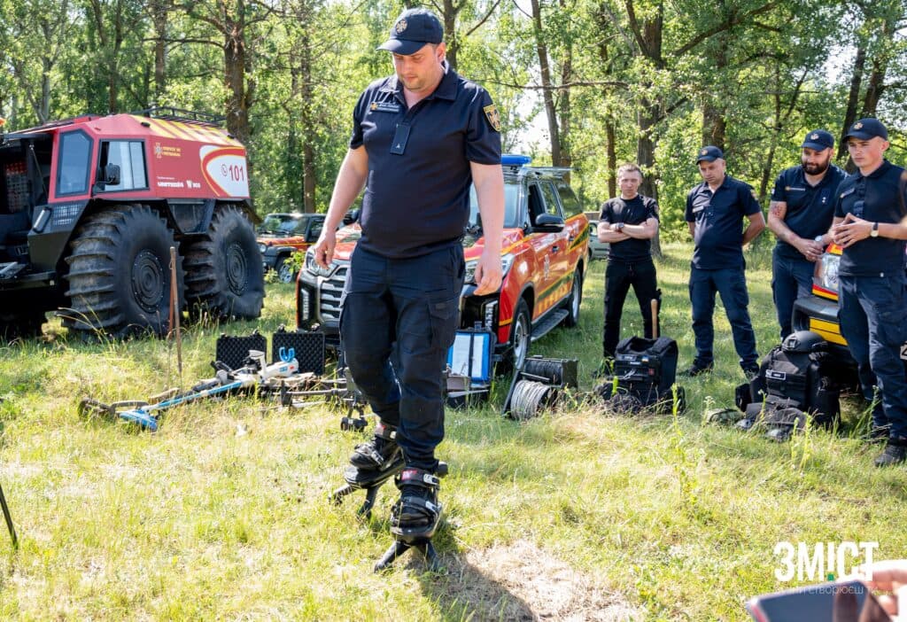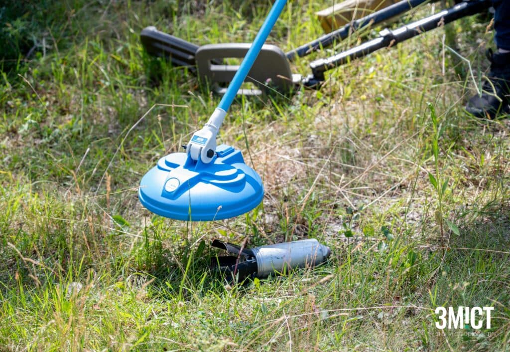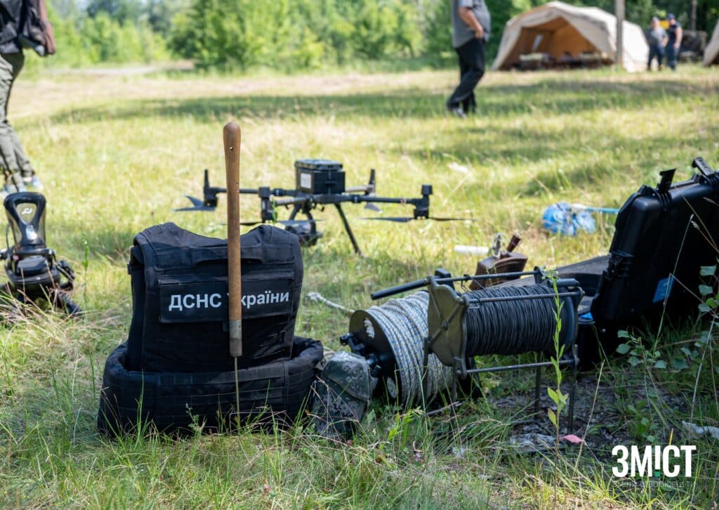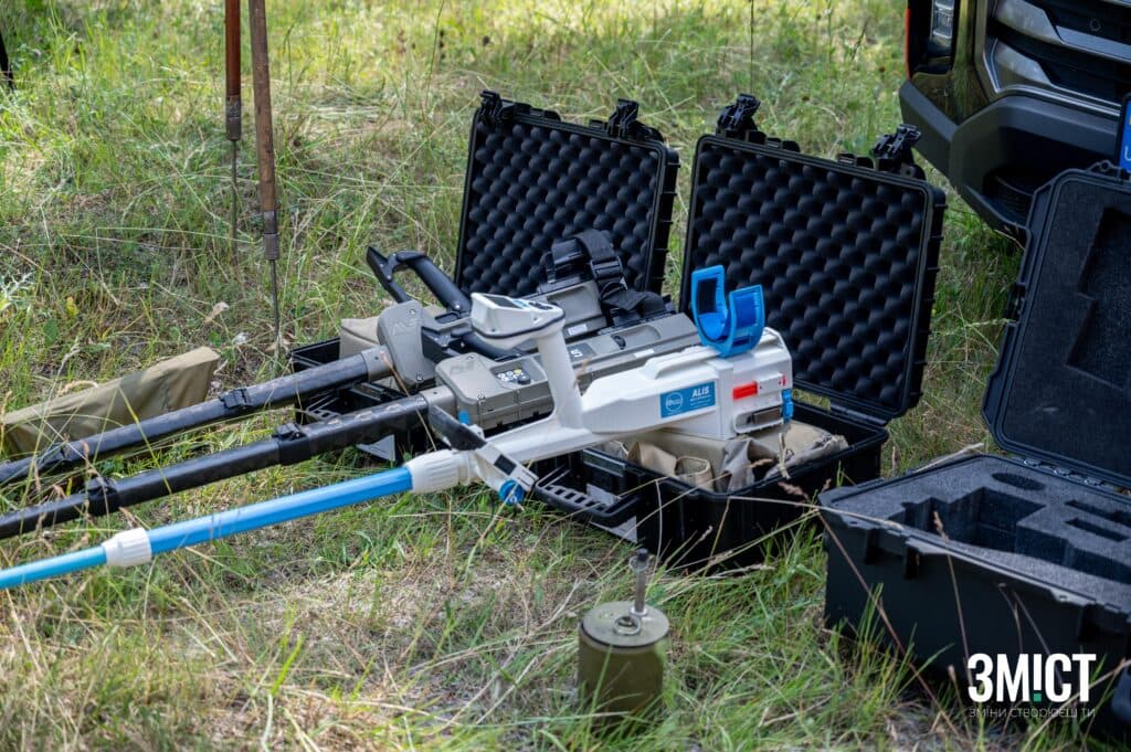 Під час розмінування використовують металошукачі різних видів: австралійського та японського виробництва. Георадар здатен виявити до 40 см глибини залягання вибухівки в землі. Щоб більше дослідити боєприпас, використовують щупи. Приладом «Кішка» сапери стягують предмет, який не можуть взяти в руки, адже він може здетонувати. Окрім цього, фахівці використовують дрон DJI Matrice, щоб перевірити кількість вибухівки на певній території.