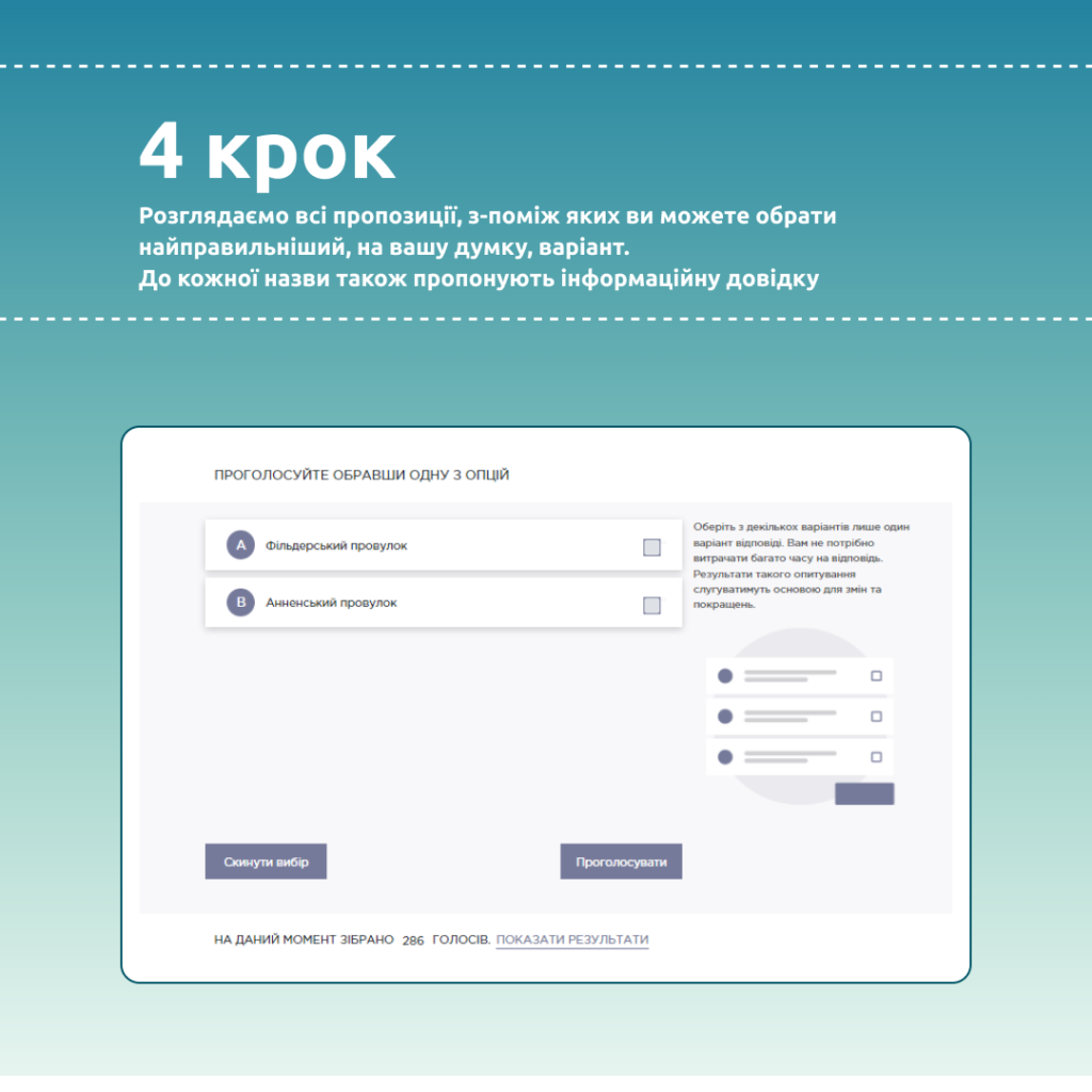 ЗМІСТ підготував для вас покрокову інструкцію, як правильно проголосувати за назви вулиць на онлайн платформі. Зробити це можна всього в 5 кроків: