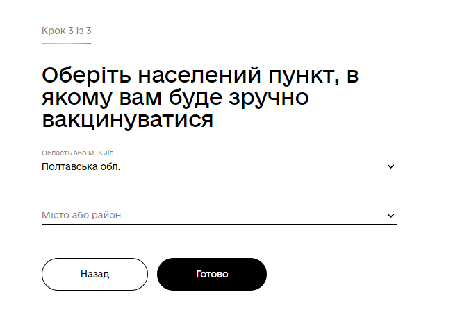 Крок 4. Обрати населений пункт, де плануєте вакцинуватися.