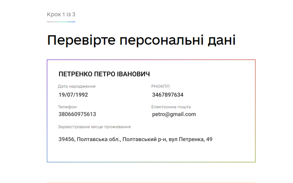 Спочатку потрібно авторизуватися на порталі «Дія» або у разі потреби зареєструватися. Для реєстрації потрібен електронний цифровий підпис. Як його отримати, можна дізнатись тут.