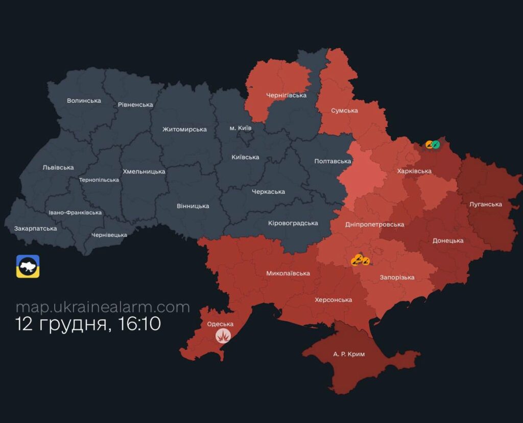 Відстежуємо загрози для області у звʼязку з активністю російських військ упродовж 12 грудня.