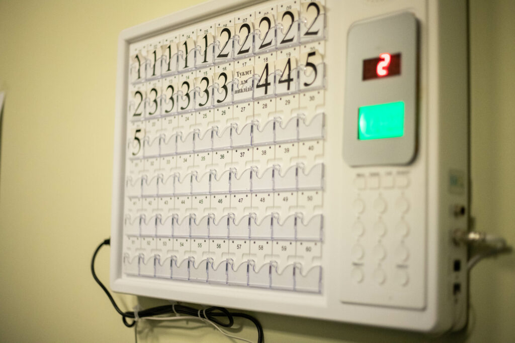 Біля кожного ліжка є кнопка виклику. Якщо пацієнту потрібна допомога медика, він натискає кнопку і медсестра чи молодша медсестра знає, куди потрібно підійти.