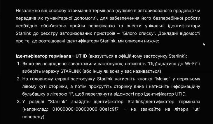 В Україні розпочався процес впровадження «білого списку» для терміналів Starlink. Це крок для національної безпеки, щоб заблокувати роботу обладнання, яке використовує Росія.