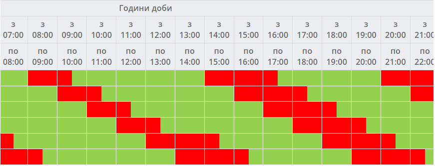 Протягом доби 20 липня в області вимикатимуть світло для однієї та двох черг одночасно.