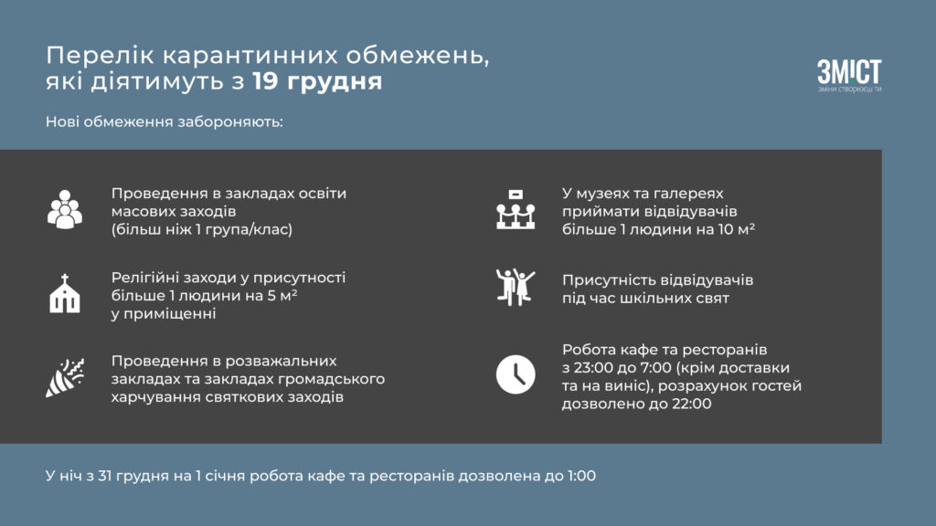Які карантинні обмеження діятимуть з 19 грудня (ГРАФІКА)