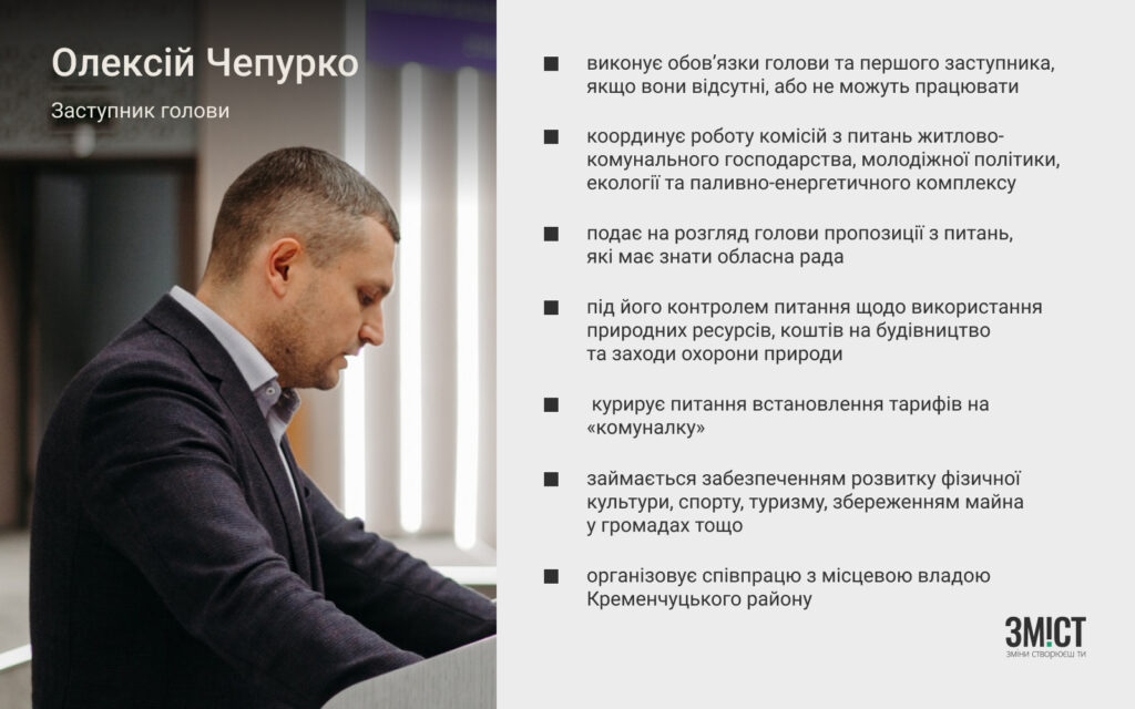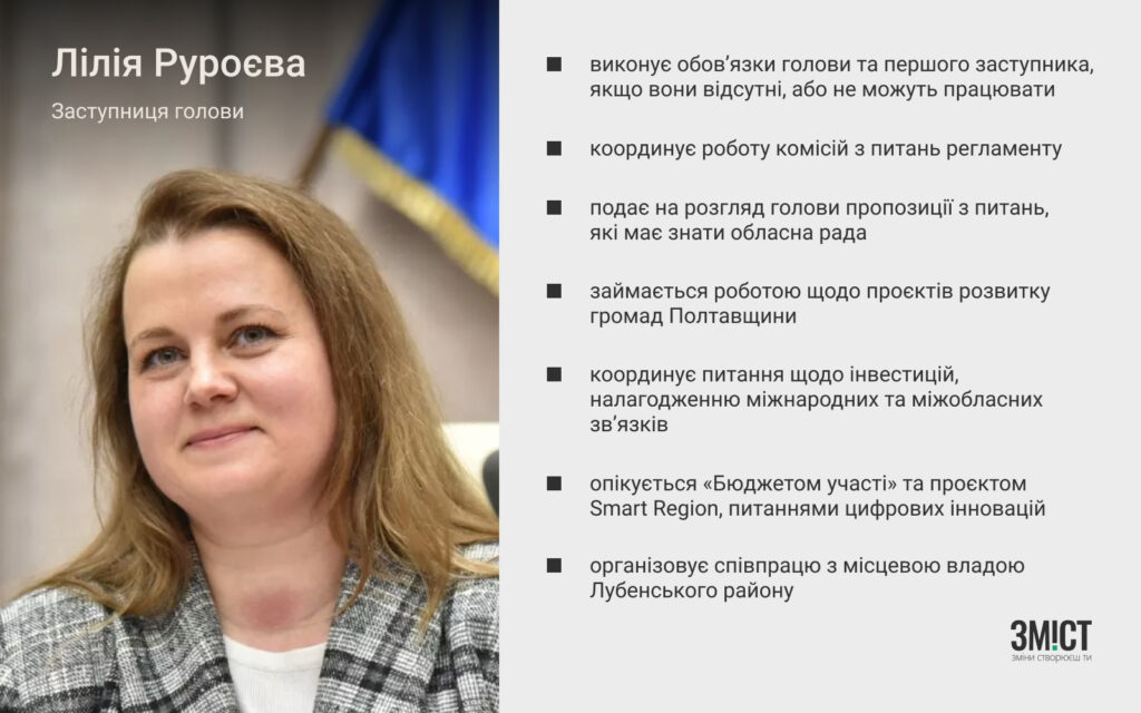Які обов’язки виконують заступники голови Полтавської обласної ради (ГРАФІКА)